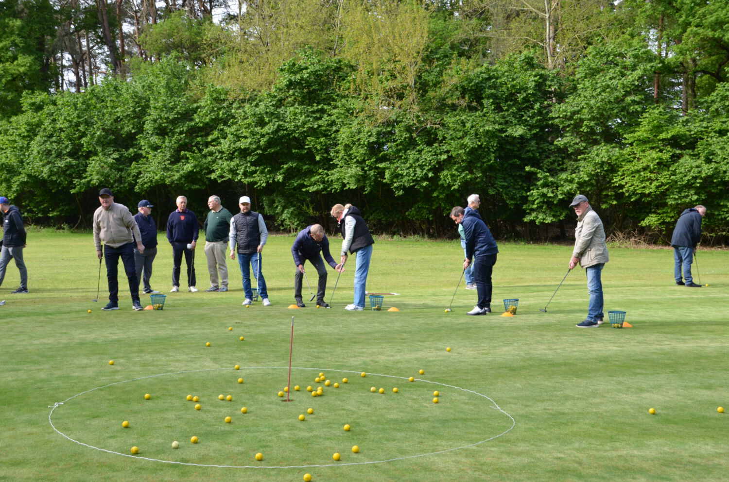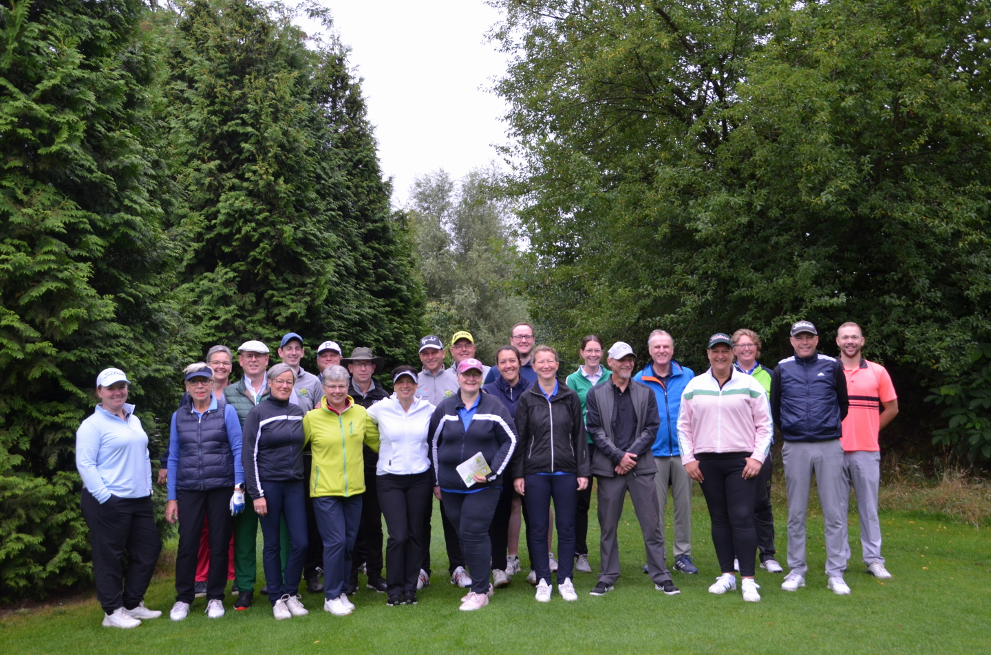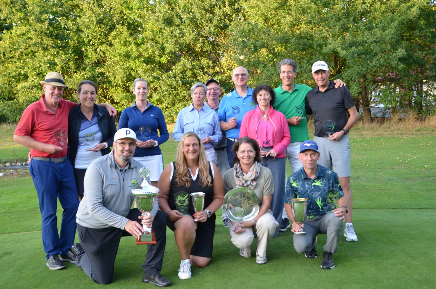 v.l. Gernot Stahlberg, Christian Robin, Hartwig Schlosser, Katja Ebbing, Henrik Buddenkuhl, Jürgen Decker (Max & Moritz), Holger Rickert, Moritz Meissner, Jana und Hartmut Grotholtmann (Präsident GC Ladbergen) -